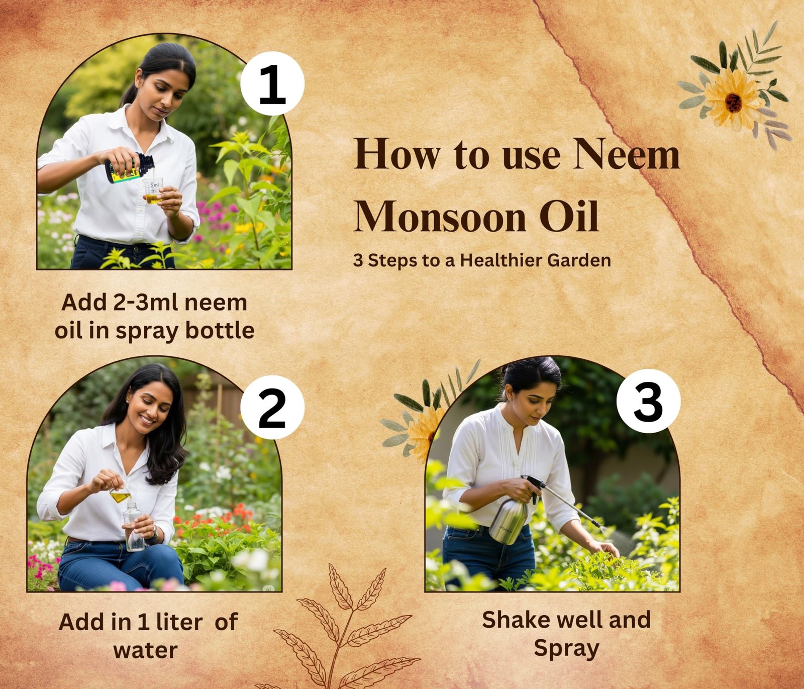 🌿 AYURVEDIC, EASY TO USE, AND LONG-LASTING Made with Ayurvedic ingredients, this spray is safe to use around family, children and pets and home garden, natural, and free from harmful chemicals. Just mix it with water and spray on your plants. It’s easy to use, safe for regular gardening, and best to apply in the morning or evening. One bottle makes up to 50 spray bottles, so it lasts a long time and gives great value.