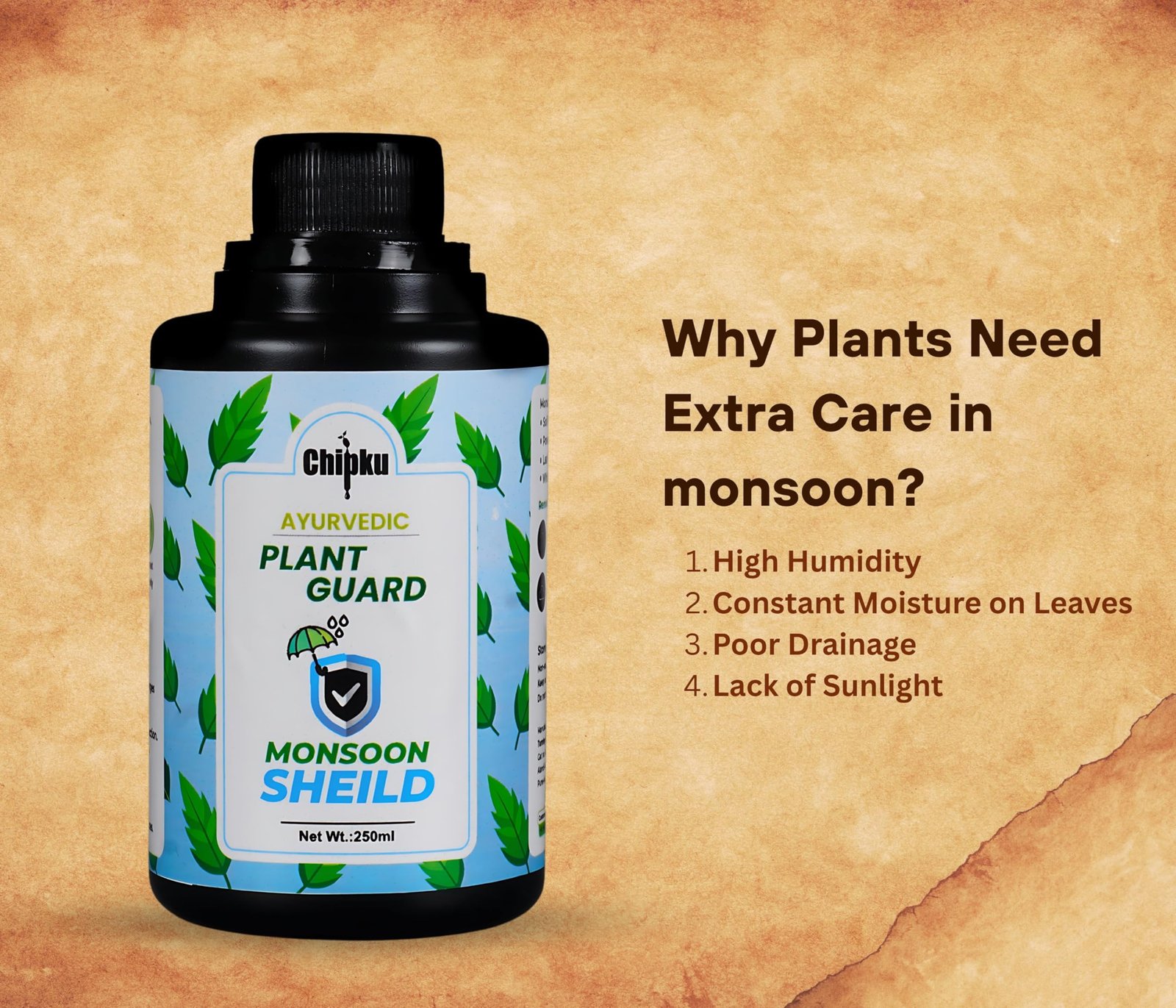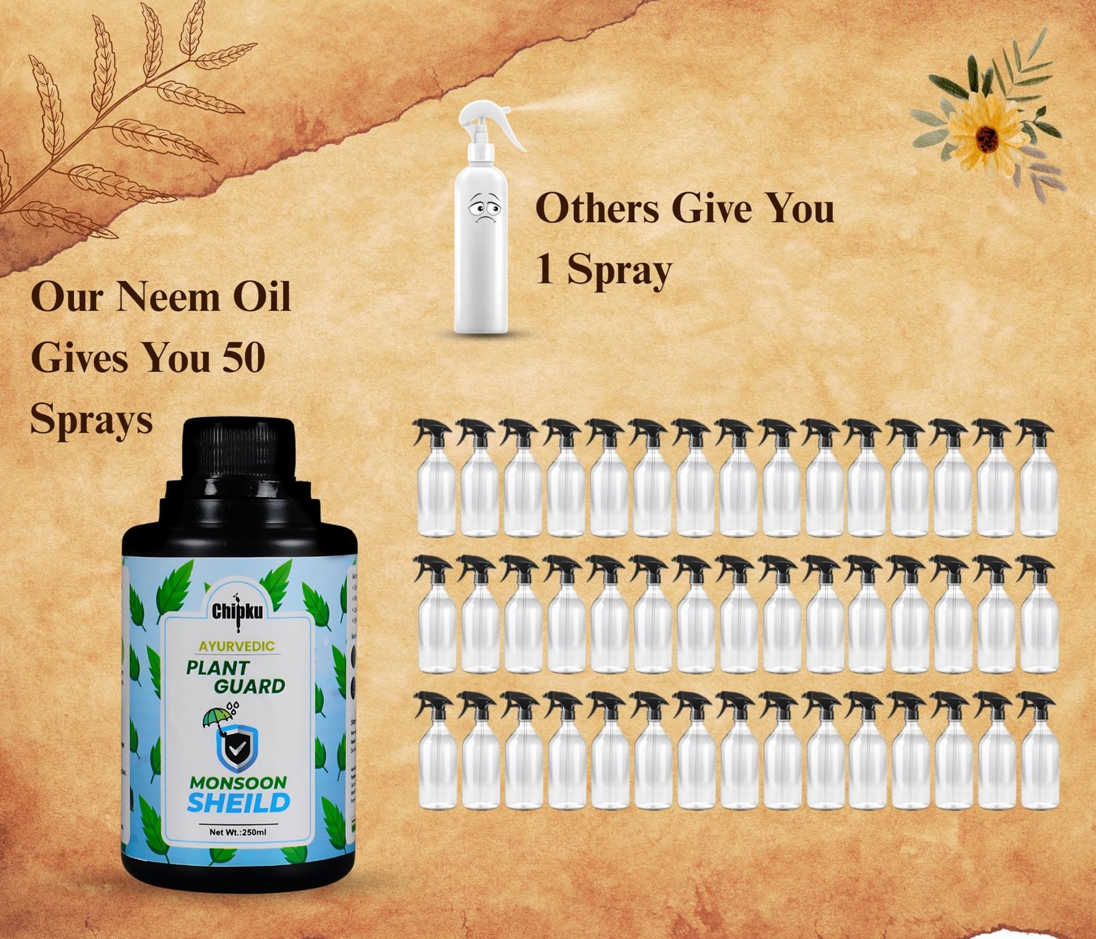 Chipku Ayurvedic Plant Guard 250ml Monsoon Shield Concentrate | 100% Organic Plant Protector | Powerful Pest Control for Indoor & Outdoor Use For Making 50 Neem Spray Bottles