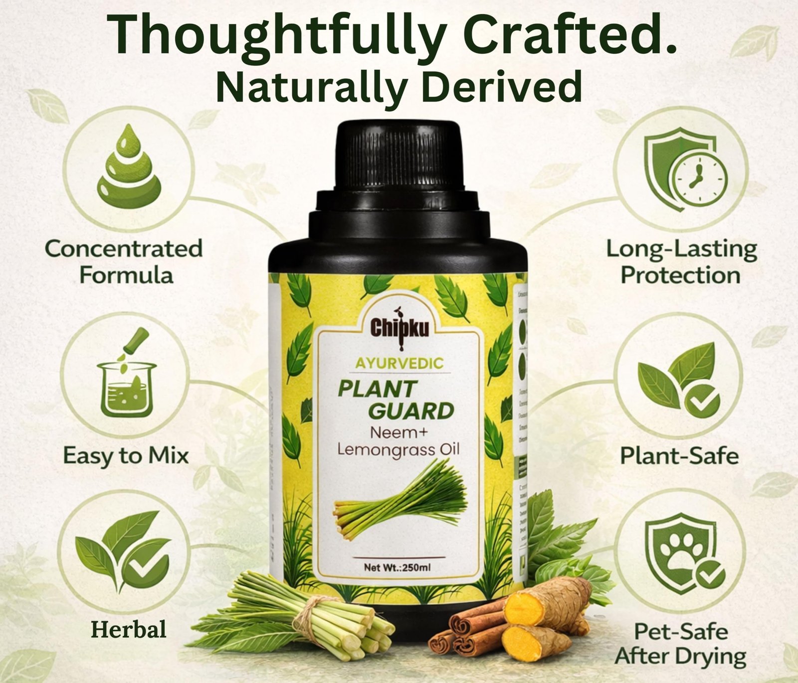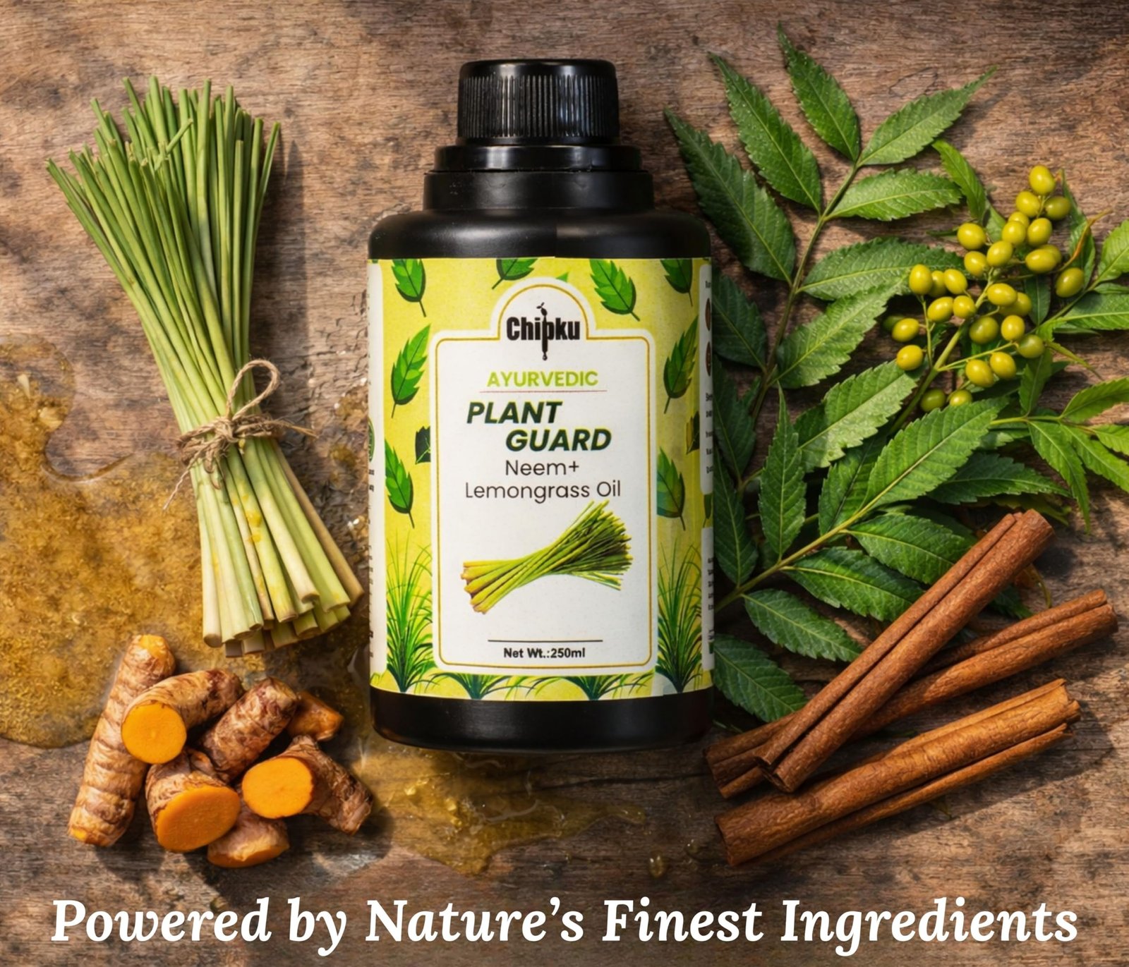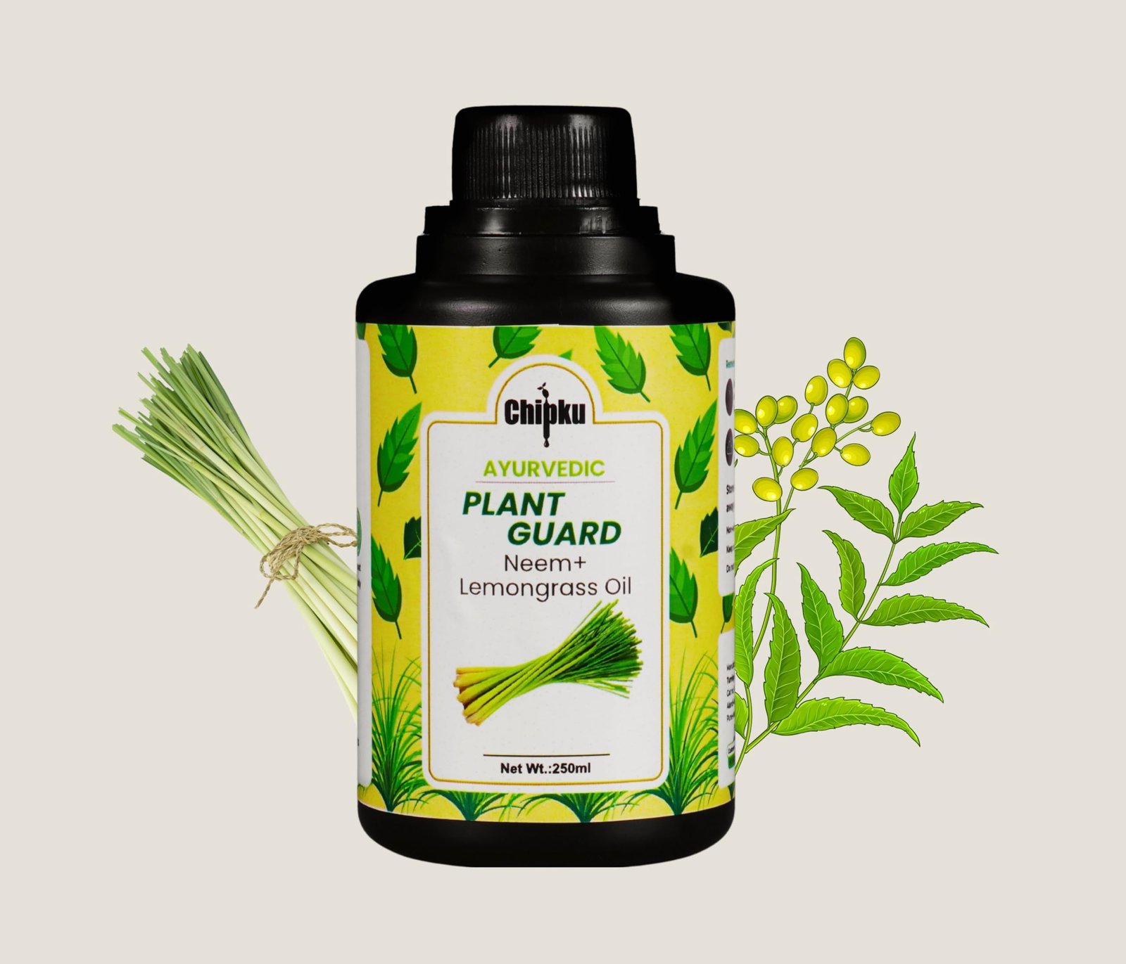 Chipku Ayurvedic Plant Guard 250ml Neem Oil + Lemongrass Oil Spray Formulation Concentrate | 100% Organic Plant Protector | Powerful Pest Control for Indoor & Outdoor Use For Making 50 Neem Spray Bottles 324.00
