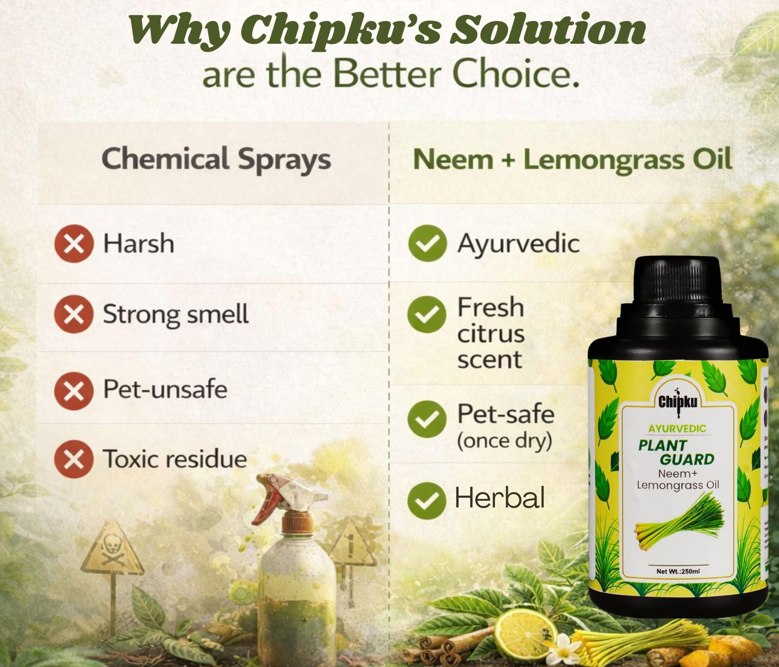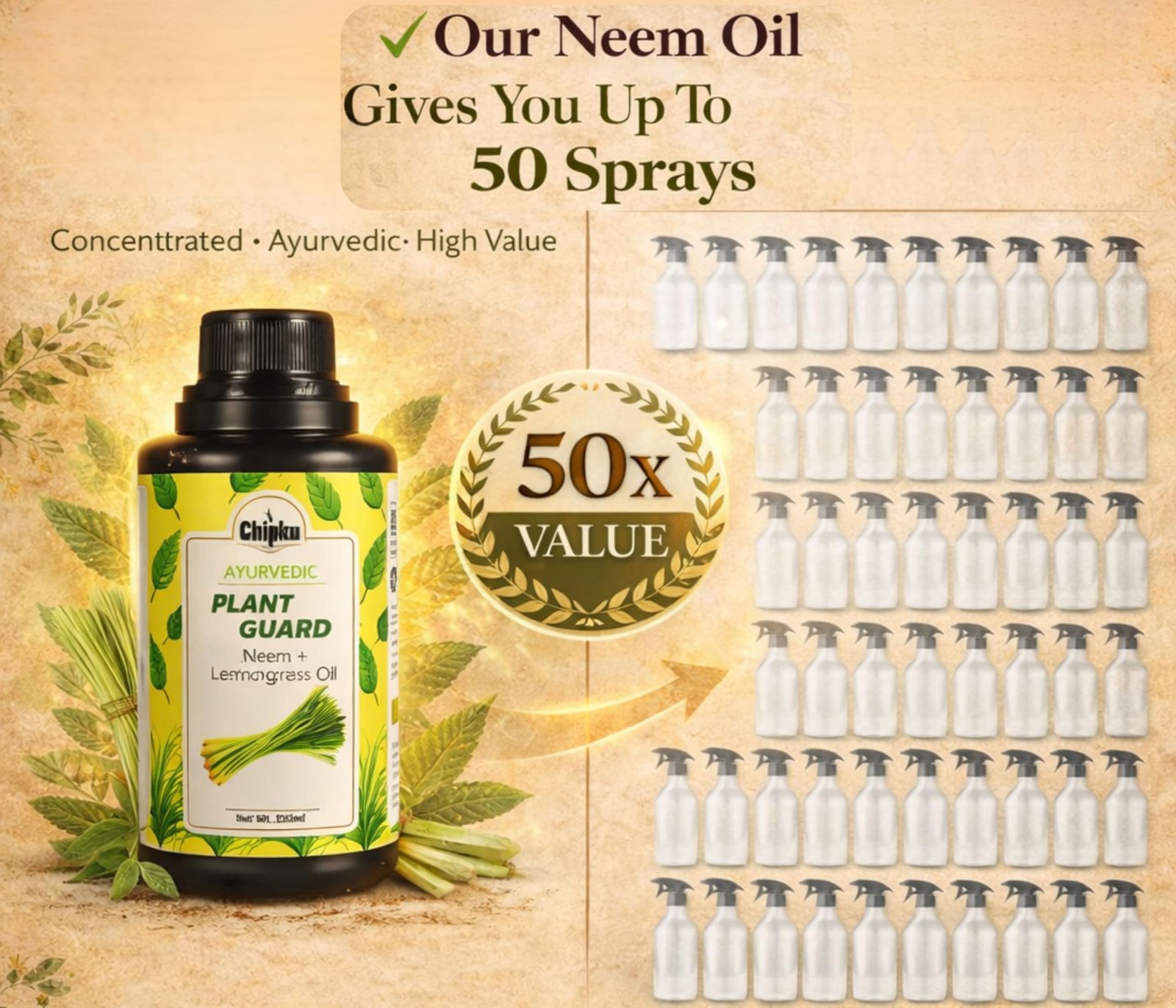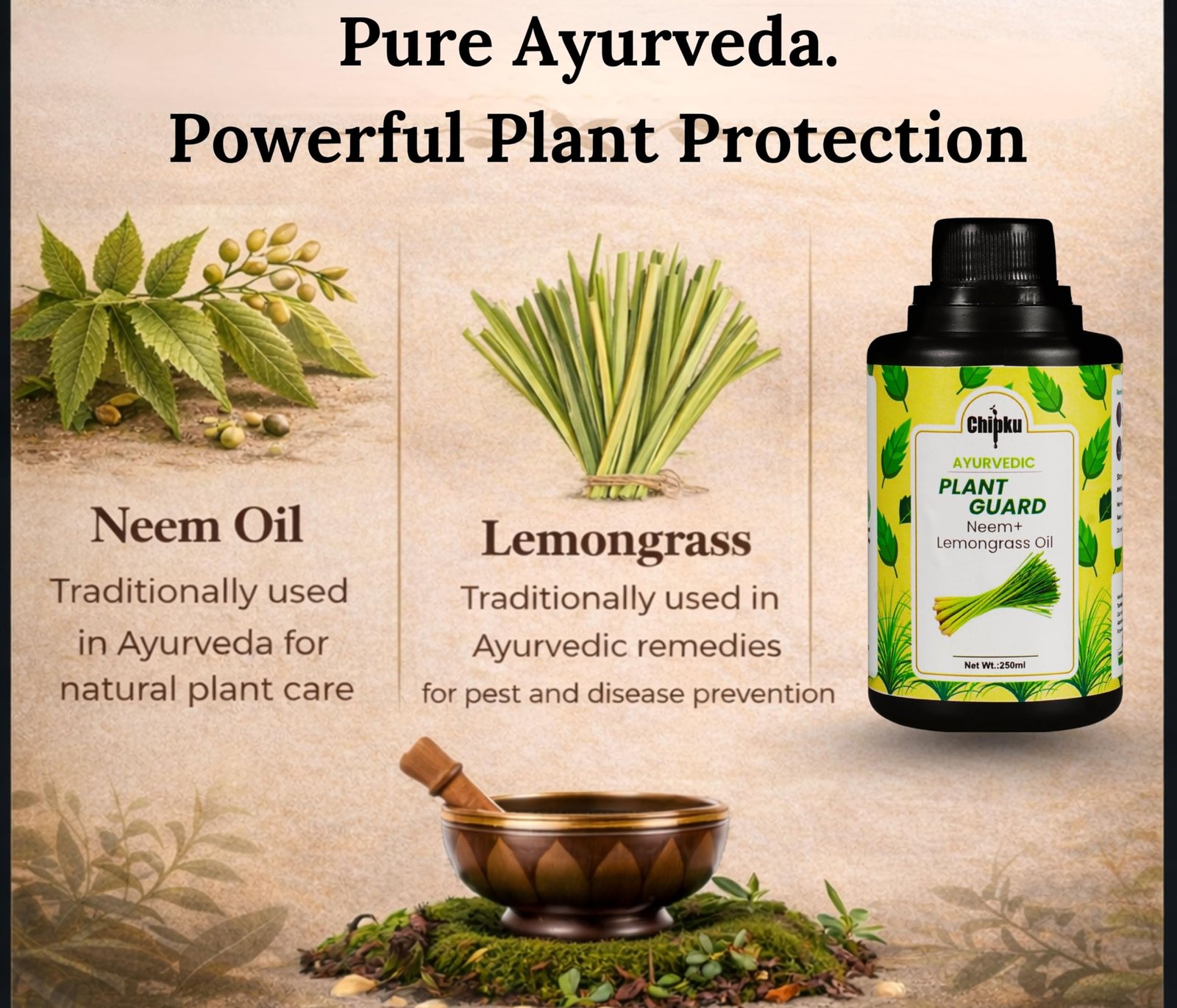 Chipku Ayurvedic Plant Guard 250ml Neem Oil + Lemongrass Oil Spray Formulation Concentrate | 100% Organic Plant Protector | Powerful Pest Control for Indoor & Outdoor Use For Making 50 Neem Spray Bottles 324.00
