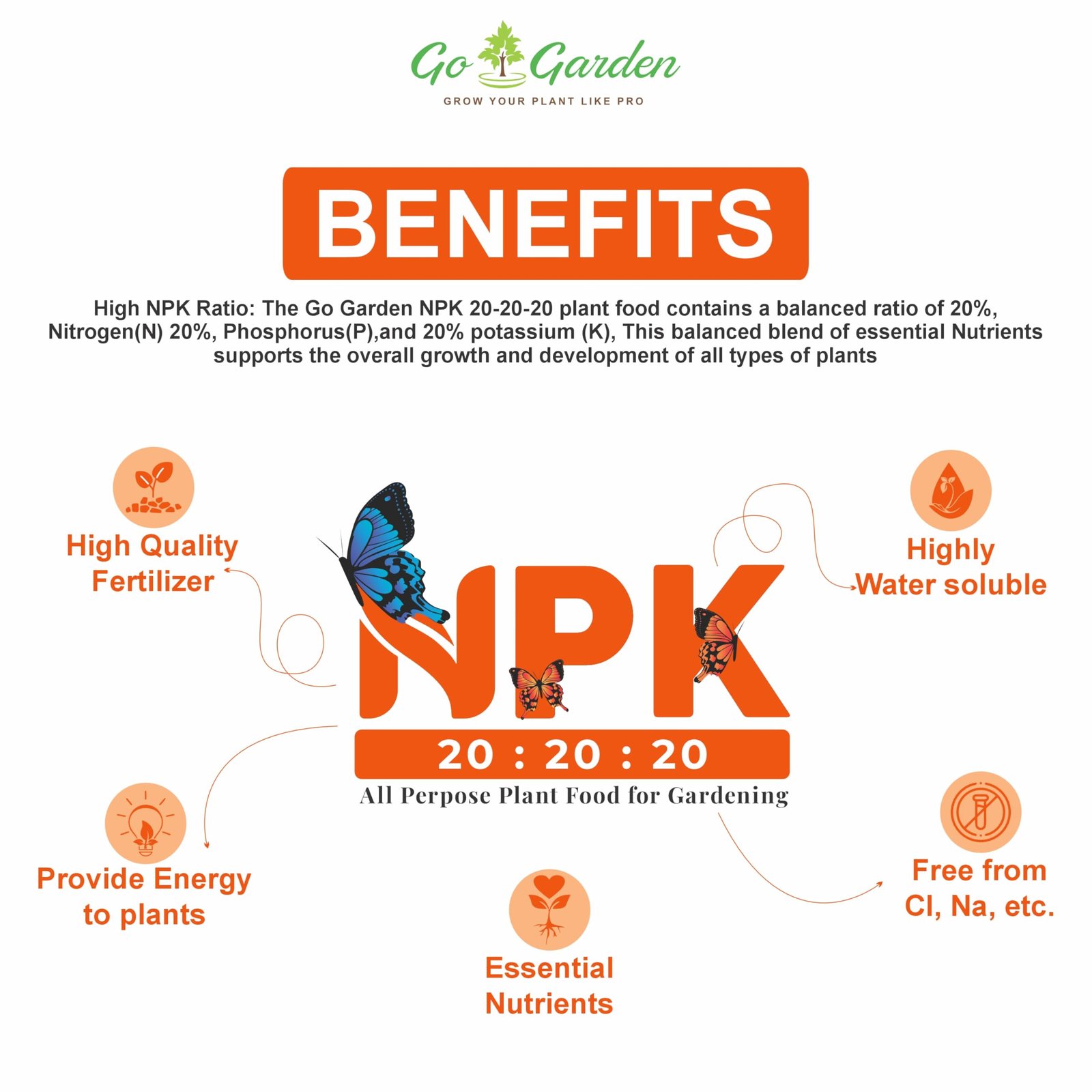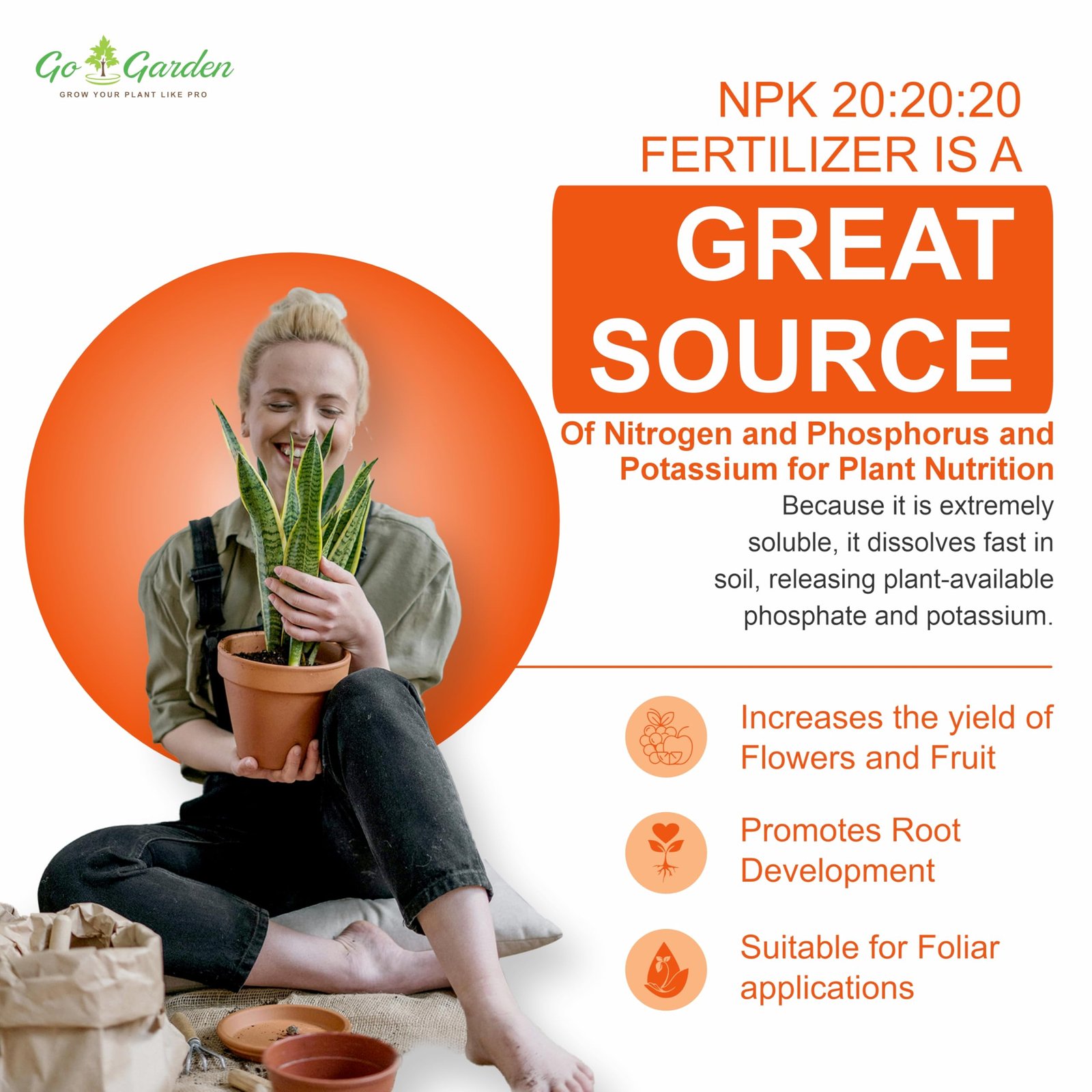 Go Garden NPK 20 20 20 Fertilizers for Plants | Complete Plant Food NPK Fertilizer for Growth Boost and Maximum Production | Ideal for Home, Garden & Outdoor Plant Care – 900 Grams Granules
