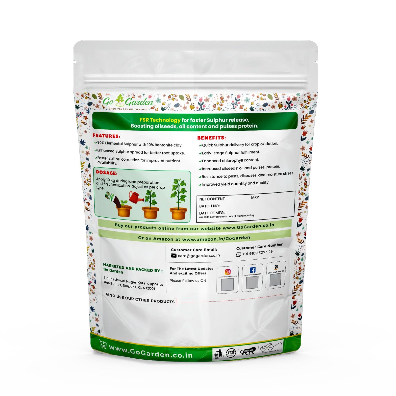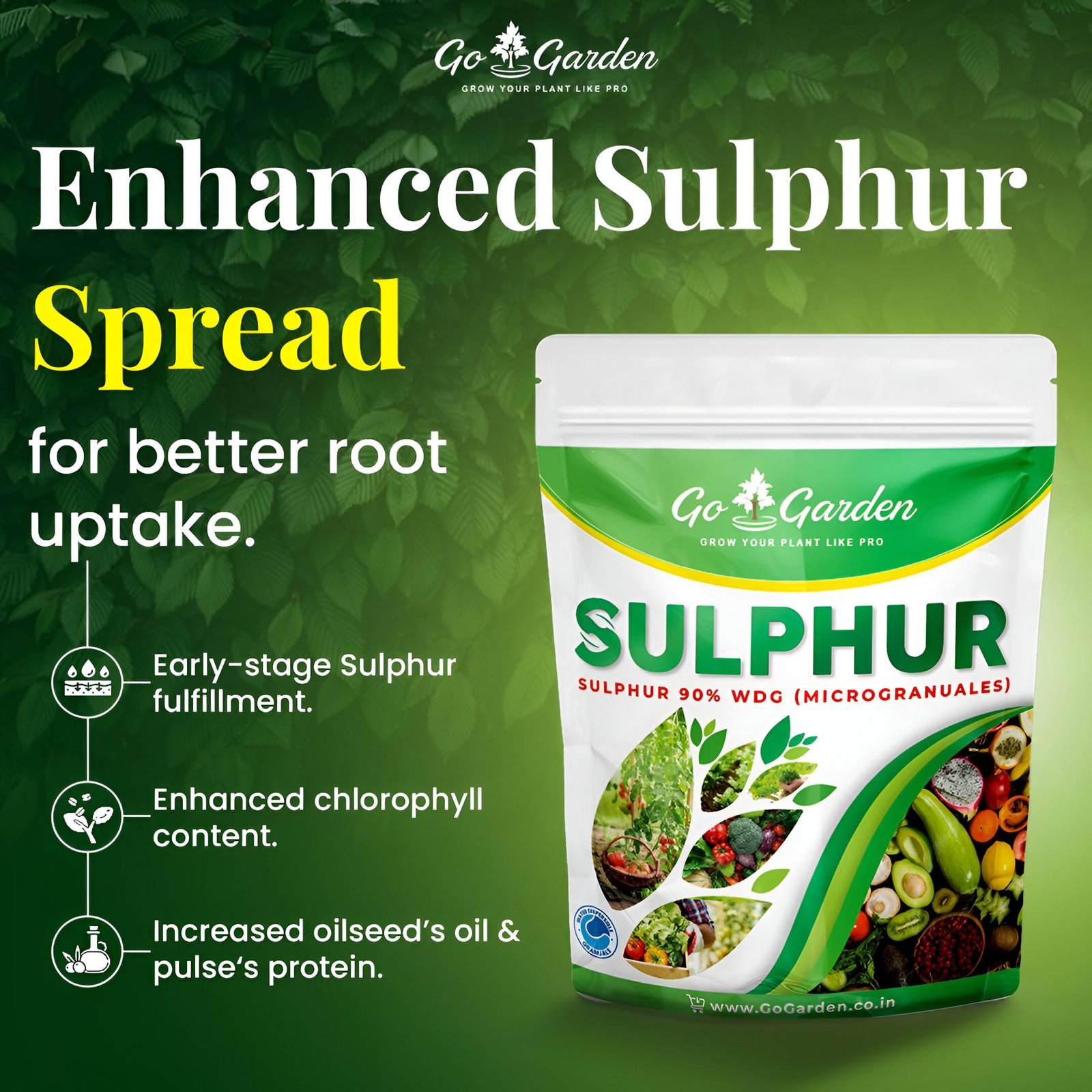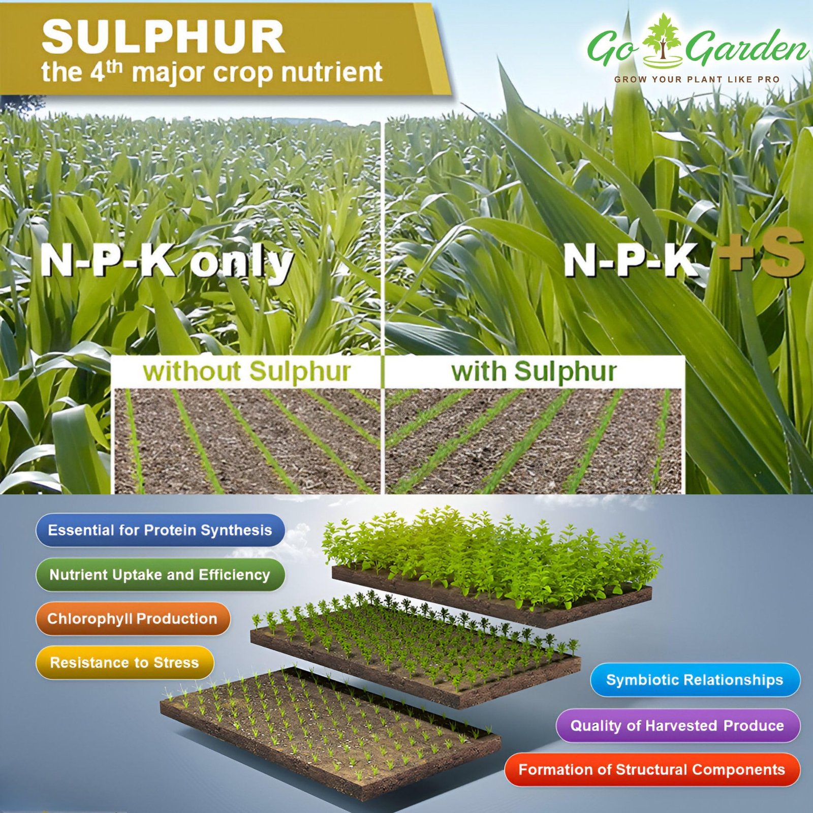 Go Garden Sulphur 90% WG Micronutrient Fertilizer 900G – Enhances Yield Quality & Quantity, Ideal for Fruits, Flowers, Vegetables, Efficient Sulphur Release, Plant Growth Booster ₹238.00
