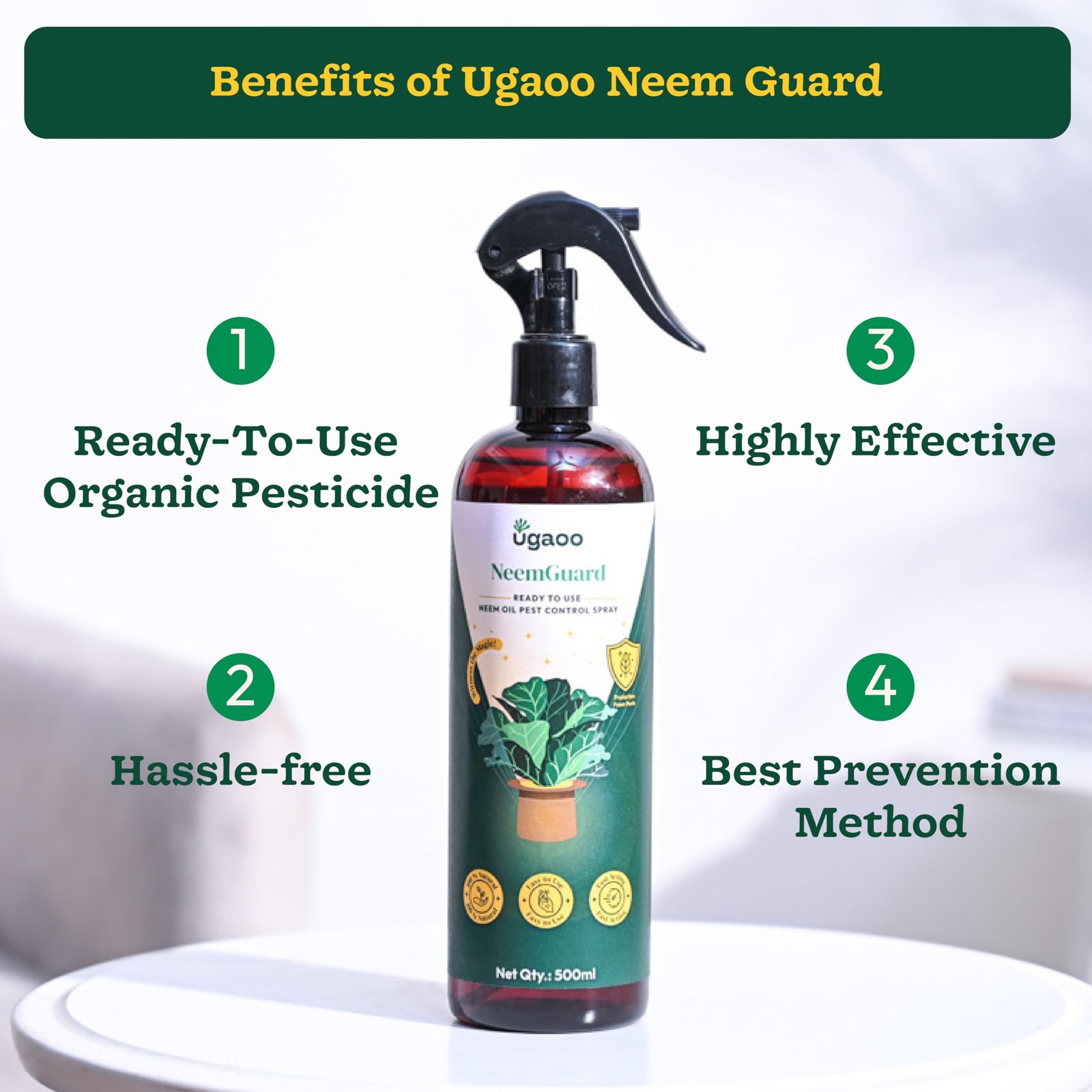 Details: Introducing our NeemGuard Sprayโan organic safeguard for your cherished plants! Crafted from pure neem oil, derived from the seeds of the neem tree, this eco-friendly solution is your garden’s protective ally. Bid farewell to common garden intruders like aphids, mealybugs, and spider mites without compromising the health of your plants. Safeguard your vegetables, flowers, and shrubs effortlessly. Our formula is gentle on beneficial insects, ensuring a thriving garden ecosystem. Embrace the natural power of neem oil to nurture a healthy environment and promote lush, vibrant foliage. Easily apply and watch your garden flourish under the protective care of NeemGuard.