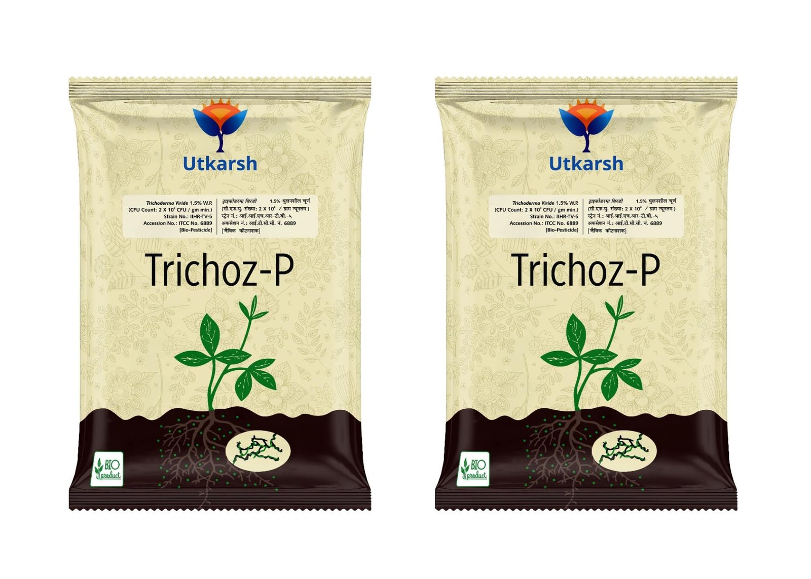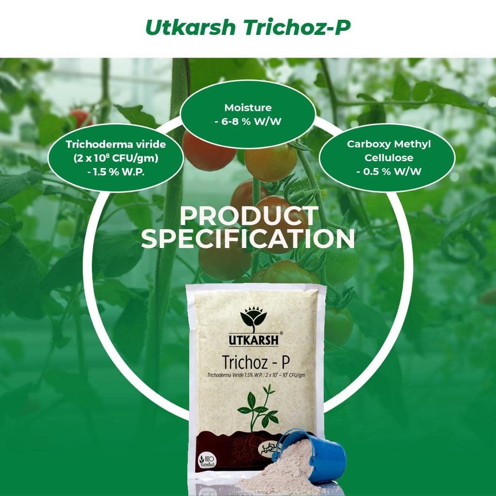 • Utkarsh Trichoz-P is compliant with The Act 1968 and is made from a fungus Trichoderma Viride 1.5%W.P., having CFU count of 2 x 10^6 per gram minimum, IIHR TV-5 Strain, Accession No. ITCC NO 6889.